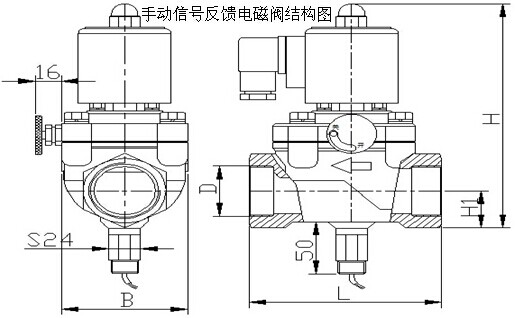 手動帶信號反饋的電磁閥工作原理: